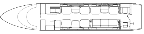 Baseline floor plan The standard double-club seating layout provides complete comfort and practicality. With a table at each seat grouping, there is ample room for taking care of the work at hand or relaxing over a quiet meal. Optional floor plan Bombardier Challenger interior Completions Every detail of a Bombardier Challenger interior is painstakingly designed and completed to respond to passengers' physical requirements and personal aesthetics. Our artisans and craftsmen await the opportunity to demonstrate their ability to create the perfect interior for you. |