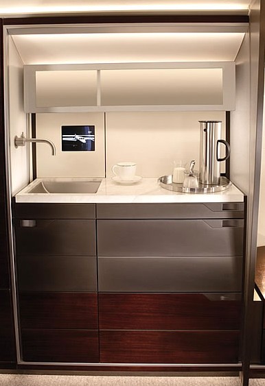 廚房 ![]() 萊格賽500廚房 • 冷熱水供應(yīng) • 可在廚房選擇安裝顯示器 • 4加侖(15升)蓄水量 • 0.8加侖(3升)咖啡機用水 • 容器 • 冰柜 • 餐具柜 • 標準的單元式儲藏設(shè)備 • 插座 (110V)