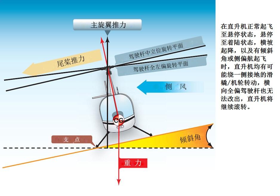 To view this page ensure that Adobe Flash Player version 9.0.124 or greater is installed. 4.3.2 相關(guān)研究一般來說,無論地面是否平整,直升機(jī)駕駛員均應(yīng)嫻熟操作。如果直升機(jī)在正常起飛著陸與斜坡起飛著陸的情況下均使用相同的傾斜角(直升機(jī)與水平面的夾角),或者滑橇/ 機(jī)輪位于地面時(shí)直升機(jī)出現(xiàn)漂移,那么該傾斜角或漂移會(huì)使直升機(jī)繞仍然接地的滑橇/機(jī)輪轉(zhuǎn)動(dòng)。當(dāng)這種情況發(fā)生時(shí),相比懸停的直升機(jī)而言,橫向操縱駕駛桿的反應(yīng)速度會(huì)更加緩慢,且效果較差。如果允許滾轉(zhuǎn)速率繼續(xù)增大,那么傾斜角將達(dá)到臨界值,即使全量橫向操縱駕駛桿也不能將滾轉(zhuǎn)改出,直升機(jī)將發(fā)生側(cè)翻,引起重大事故。隨著滾轉(zhuǎn)速率增大, 仍有可能改出的角度越來越小。臨界滾轉(zhuǎn)角也相應(yīng)減小,臨界滾轉(zhuǎn)角在下列情況下會(huì)進(jìn)一步減。河覀(cè)滑橇/機(jī)輪接地、 左側(cè)風(fēng)、橫向重心靠右、主旋翼拉力幾乎等于直升機(jī)重量以及抵左腳蹬。 a)正常起飛和著陸如果在平整且堅(jiān)硬的地面起飛和著陸,一側(cè)滑橇/機(jī)輪 位于地面,且升力約等于直升機(jī)總重,駕駛員應(yīng)謹(jǐn)慎操縱不要發(fā)生水平位移。駕駛員應(yīng)該平穩(wěn)操作并注意駕駛桿配平(利用配平裝置),從而保證俯仰或滾轉(zhuǎn)速率不會(huì)增加,尤其是滾轉(zhuǎn)率增加。如果傾斜角開始增加至約5-8°,同時(shí)全偏駕駛桿不能對(duì)角度進(jìn)行修正時(shí),駕駛員應(yīng)減小總距以消除不穩(wěn)定的滾轉(zhuǎn)狀態(tài)。否則傾斜角會(huì)達(dá)到臨界值,將造成直升機(jī)側(cè)翻。(參見圖4) ![]() 圖4 直升機(jī)右滑橇/機(jī)輪接地時(shí)的各種作用力示意圖 b)斜坡起飛和著陸在斜坡上進(jìn)行起飛和著陸時(shí),駕駛員應(yīng)遵循已公布的操 ![]() 圖 5 向上坡方向滾轉(zhuǎn)動(dòng)作示意圖 如果直升機(jī)在斜坡上并向上坡方向滾轉(zhuǎn),修正時(shí)過快放下總距可能引起直升機(jī)快速向反方向滾轉(zhuǎn)。如果(著陸時(shí)) 上坡方向的滑橇/機(jī)輪撞地,會(huì)導(dǎo)致直升機(jī)上坡方向的滑橇/ 機(jī)輪彈起,并且慣性會(huì)造成直升機(jī)圍繞下坡方向接地點(diǎn)滾轉(zhuǎn)并翻轉(zhuǎn)至一側(cè)。駕駛員要避免突然增加總距使直升機(jī)離地, 因?yàn)檫@會(huì)產(chǎn)生一個(gè)很大而且突然的反方向滾轉(zhuǎn)力矩。這種運(yùn)動(dòng)可能是無法控制的。如果直升機(jī)在一側(cè)滑橇/機(jī)輪在地面的情況下形成滾轉(zhuǎn)速率,直升機(jī)就可能向一側(cè)翻轉(zhuǎn)。(參見圖 6) ![]() 圖 6 向下坡方向滾轉(zhuǎn)動(dòng)作示意圖 |