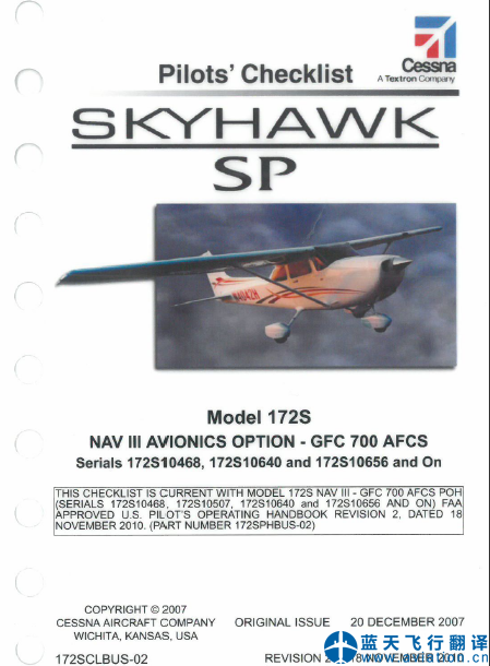 北京藍天飛行翻譯公司承接大型通航公司的塞斯納172S飛行員檢查單翻譯任務(wù) Cessna 172S Pilots' Checklist Translation ![]() 塞斯納172S飛行員檢查單 Cessna 172S Pilots' Checklist 塞斯納172S飛行員檢查單(Cessna 172S Pilots' Checklist)的主要內(nèi)容包含有: NORMAL PROCEDURES |