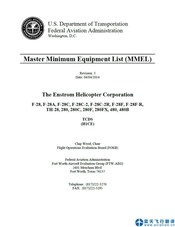 北京藍(lán)天飛行翻譯公司完成恩斯特龍480B直升機(jī)主最低設(shè)備清單翻譯任務(wù) Enstrom Helicopter Master Minimum Equipment List (MMEL) Translation 主最低設(shè)備清單(Master Minimum Equipment List)主要內(nèi)容包含有空調(diào)、自動(dòng)飛行、通訊、電源、設(shè)備/裝飾、防火、燃油、冰雨防護(hù)、儀表、燈光、導(dǎo)航、氧氣、艙門、主旋翼傳動(dòng)、動(dòng)力裝置、發(fā)動(dòng)機(jī)、指示等系統(tǒng)的部件說明、安裝數(shù)量、放行所需數(shù)量、備注和例外等 ![]() 恩斯特龍直升機(jī)主最低設(shè)備清單 Enstrom Helicopter Master Minimum Equipment List |