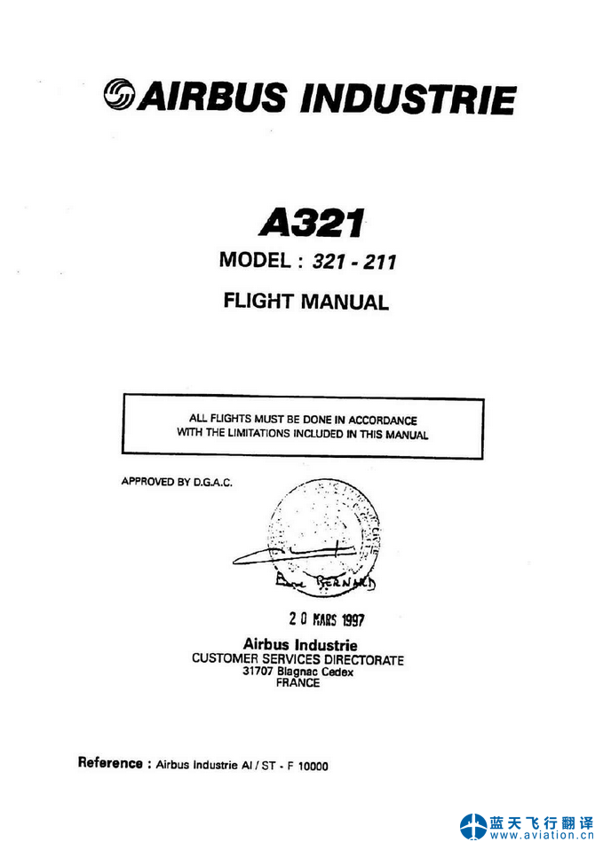 北京藍天飛行翻譯公司完成航空公司空客A320-214和A321-211機型飛機飛行手冊翻譯任務 Airbus A320-214 and A321-211 Airplane Flight Manual Translation