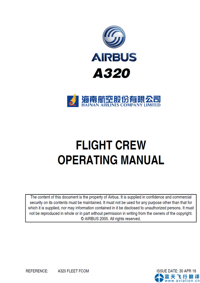 北京藍(lán)天飛行翻譯公司完成航空公司2018年4月30日版本空客A320機(jī)組操作手冊翻譯任務(wù) 30 APR 18 A320 FLIGHT CREW OPERATING MANUAL Translation 本次翻譯的空客機(jī)型包含空客A320系列中的319-132、319-133、320-232、320-214等機(jī)型。 ![]() A320飛機(jī)機(jī)組操作手冊 A320 FLIGHT CREW OPERATING MANUAL |